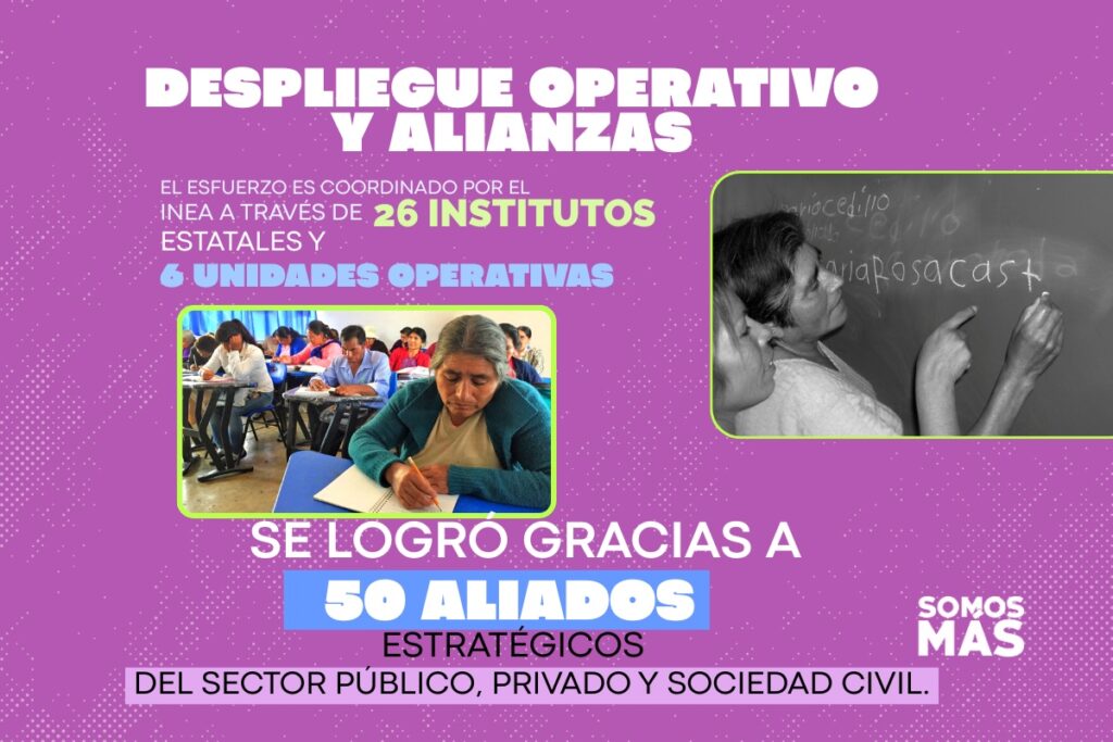 Para lograr estos resultados, la administración federal ha movilizado toda la estructura del Instituto Nacional para la Educación de los Adultos (INEA). La operación se sustenta en una red que abarca 26 Institutos Estatales de Educación para Adultos y seis Unidades de Operación distribuidas estratégicamente en todo el país. Esta cobertura territorial ha sido clave para identificar y atender a las comunidades con mayor necesidad.