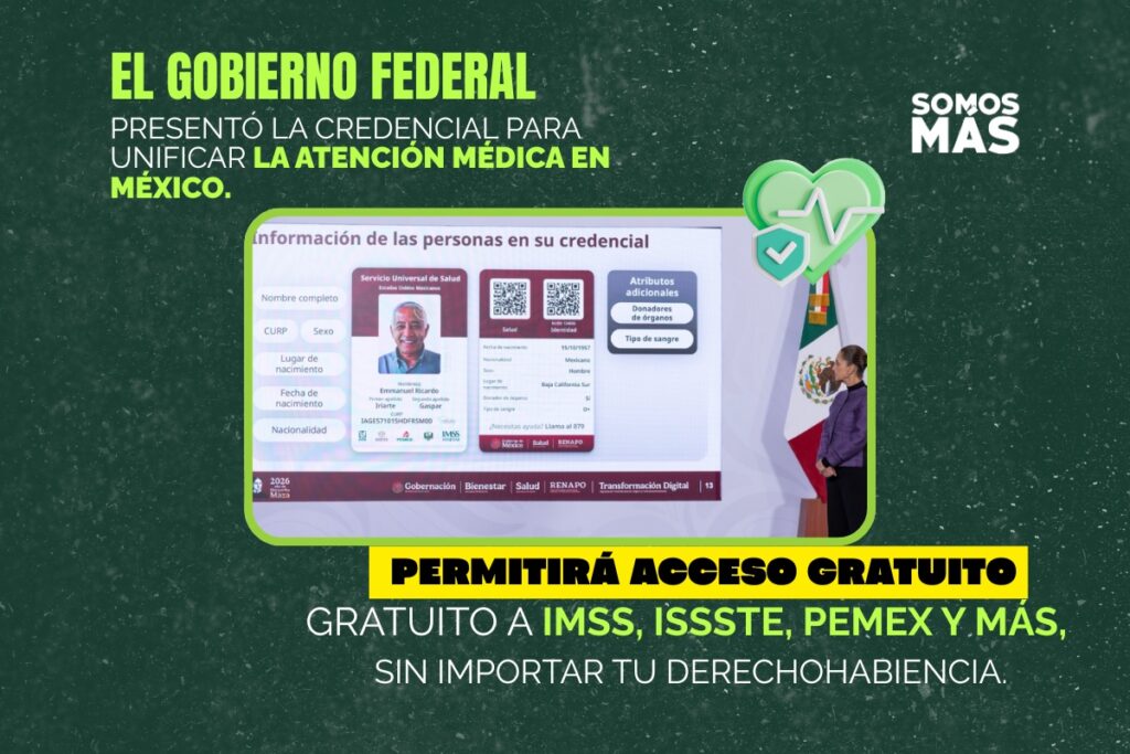 La presidenta Claudia Sheinbaum Pardo anunció que este próximo mes de abril iniciará oficialmente el proceso de credencialización para el Servicio Universal de Salud. El objetivo central de esta iniciativa es unificar y fortalecer el sistema nacional para que las y los mexicanos cuenten con una sola identidad de salud, lo que les permitirá recibir atención médica gratuita en cualquier institución pública del país, ya sea en el IMSS, ISSSTE, IMSS Bienestar, así como en los servicios de las Fuerzas Armadas y los Institutos Nacionales.