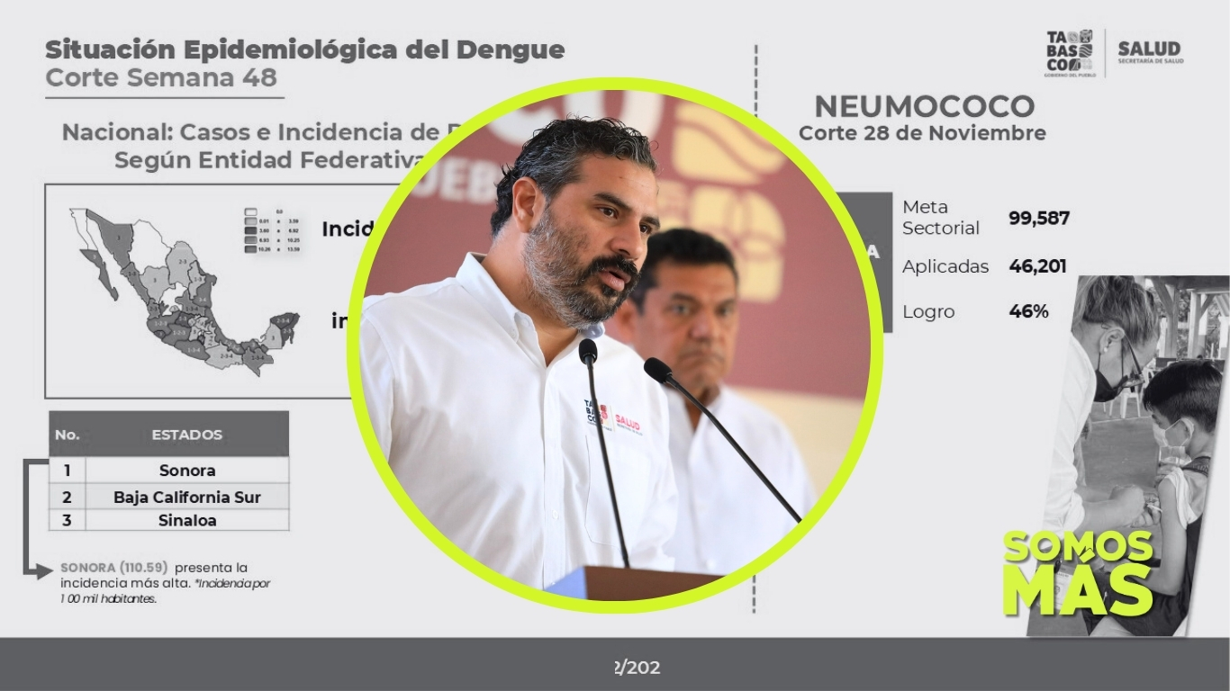- El estatus: Detalló que Tabasco ocupa el lugar 14 a nivel nacional con 54 casos positivos, concentrándose la mayoría en el municipio de Centro.