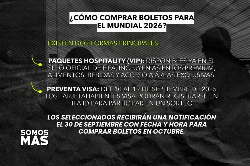 La cuenta regresiva para el Mundial 2026 avanza y los aficionados ya buscan asegurar su lugar en alguno de los 13 partidos que se jugarán en México, incluido el debut del Tri en el Estadio Azteca. La FIFA ya abrió la venta de boletos VIP, mientras que la primera oportunidad para adquirir entradas generales llegará en septiembre.