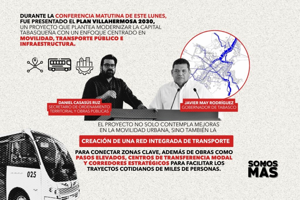 Durante la conferencia matutina de este lunes, fue presentado el Plan Villahermosa 2030, un proyecto que plantea modernizar la capital tabasqueña con un enfoque centrado en movilidad, transporte público e infraestructura.