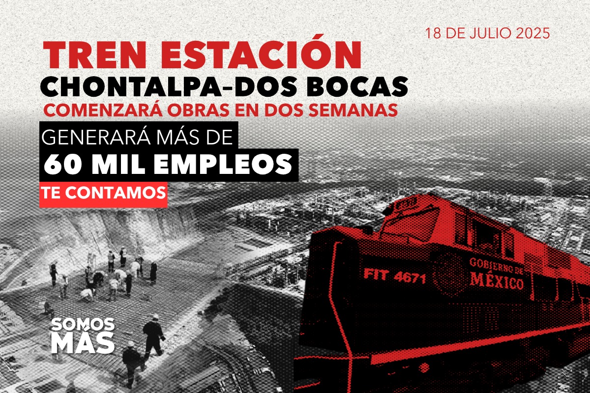 Tren Estación Chontalpa-Dos Bocas comenzará obras en dos semanas: Generará más de 60 mil empleos. Te contamos