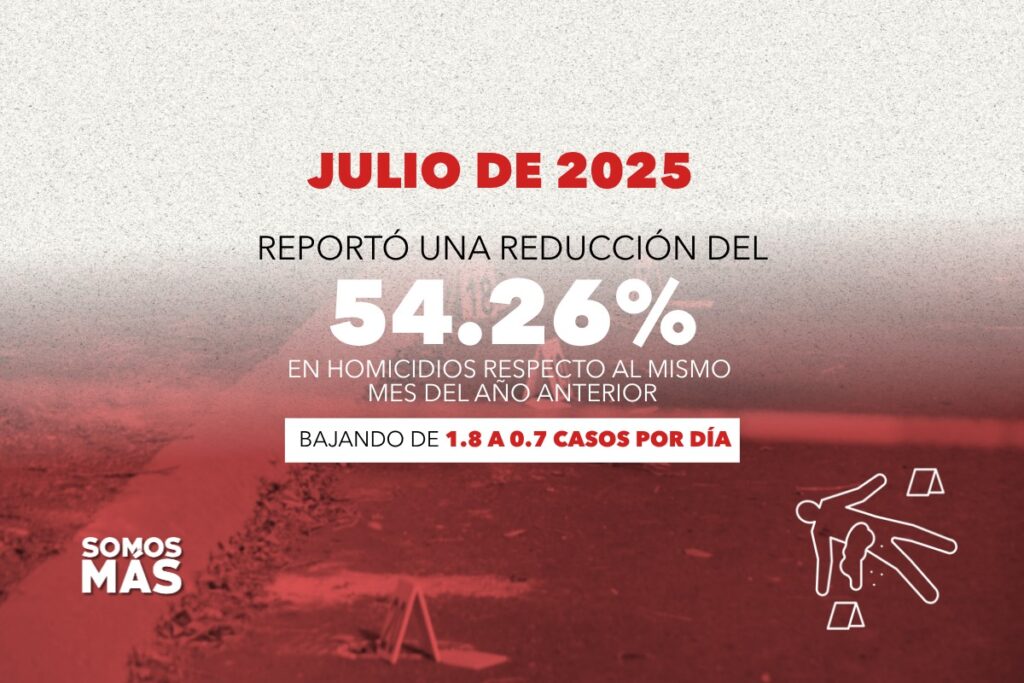 Uno de los datos más relevantes fue la baja del 77.77% en el promedio diario de homicidios dolosos en Tabasco entre la semana 7 y la semana 30 de este año. El número pasó de 4.6 a 1.0 homicidios por día, lo cual fue atribuido al reforzamiento de la estrategia de seguridad estatal y federal. En una comparativa mensual, julio de 2025 reportó una reducción del 54.26% en homicidios respecto al mismo mes del año anterior, bajando de 1.8 a 0.7 casos por día en promedio. En municipios como Centro, la cifra se mantuvo en 0.0.