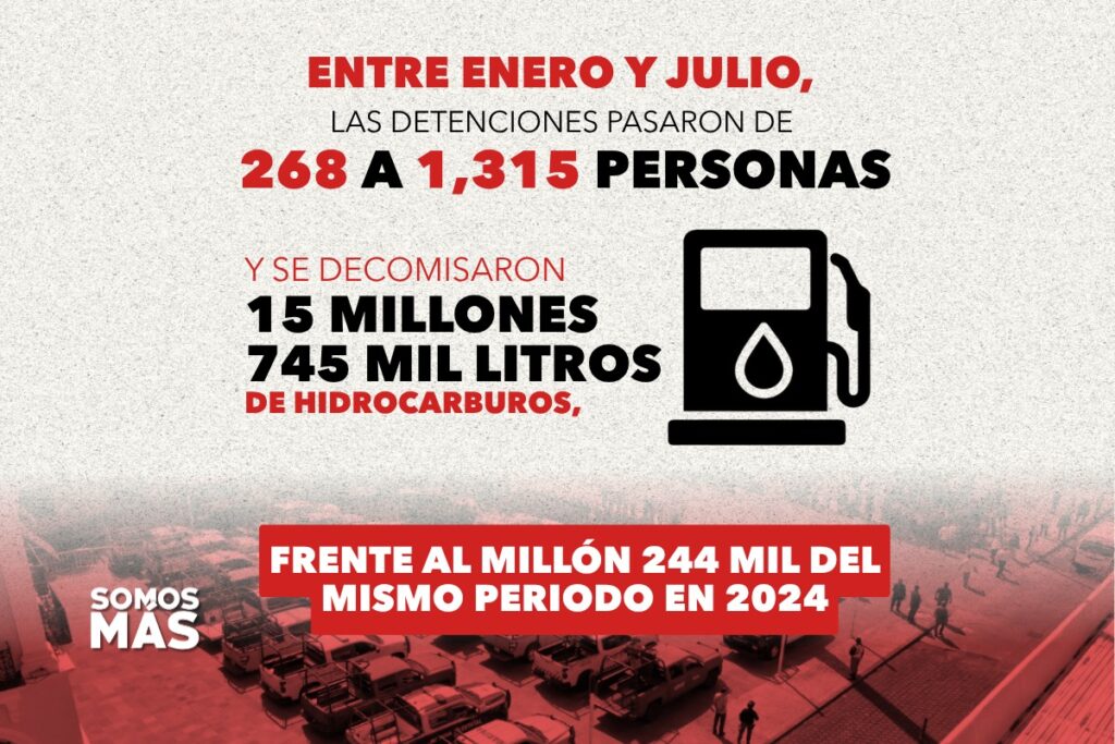 La Fuerza de Intervención Regional Tabasco (F.I.R.T. “Olmeca”) presentó un balance operativo que muestra un incremento significativo en diversas acciones de seguridad. Entre enero y julio, las detenciones pasaron de 268 a 1,315 personas, y se decomisaron 15 millones 745 mil litros de hidrocarburos, frente al millón 244 mil del mismo periodo en 2024. Las armas aseguradas subieron de 202 a 356, mientras que las dosis de droga decomisadas aumentaron un 810.01%, pasando de 2,987 a 27,171.