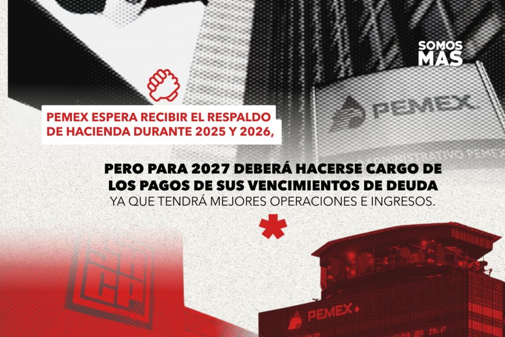 Pemex espera recibir el respaldo de Hacienda durante 2025 y 2026, pero para 2027 deberá hacerse cargo de los pagos de sus vencimientos de deuda, ya que tendrá mejores operaciones e ingresos.