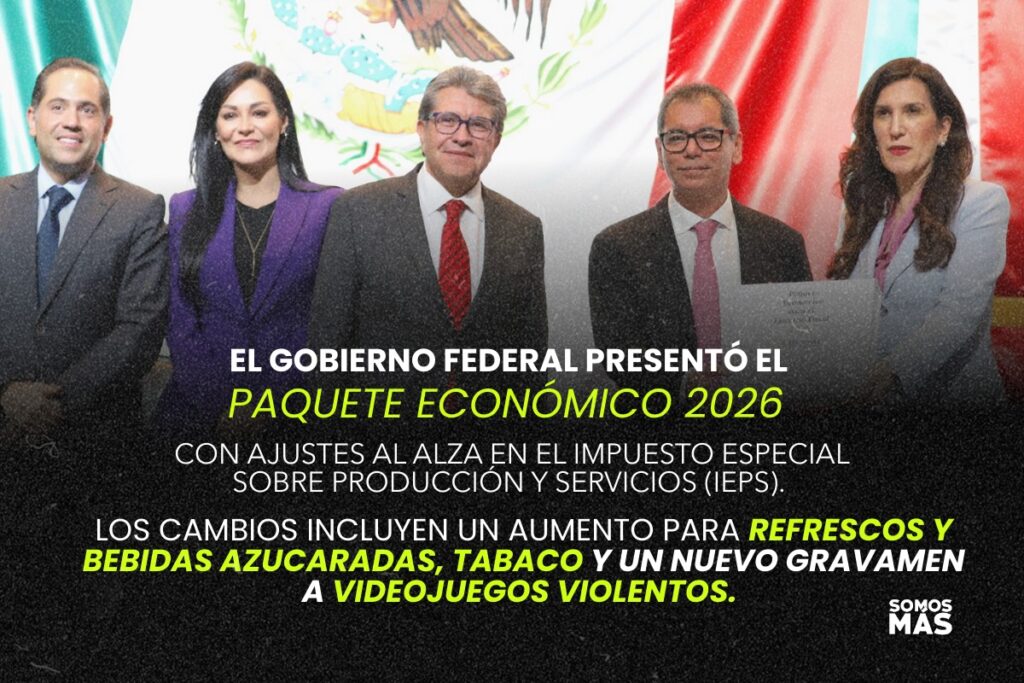 El Gobierno federal presentó el Paquete Económico 2026 con ajustes al alza en el Impuesto Especial sobre Producción y Servicios (IEPS). Los cambios incluyen un aumento para refrescos y bebidas azucaradas, tabaco y un nuevo gravamen a videojuegos violentos. La medida, entregada a la Cámara de Diputados el lunes por la noche, busca recaudar ingresos adicionales y, al mismo tiempo, atender problemas de salud y seguridad.