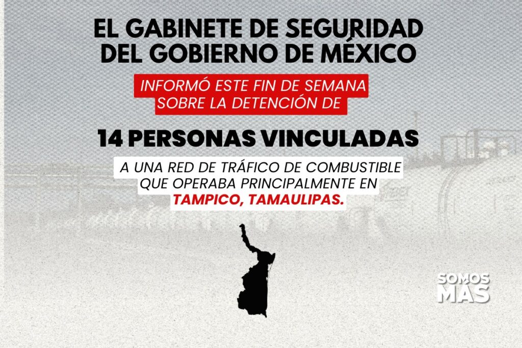 El Gabinete de Seguridad del Gobierno de México informó este fin de semana sobre la detención de 14 personas vinculadas a una red de tráfico de combustible que operaba principalmente en Tampico, Tamaulipas.