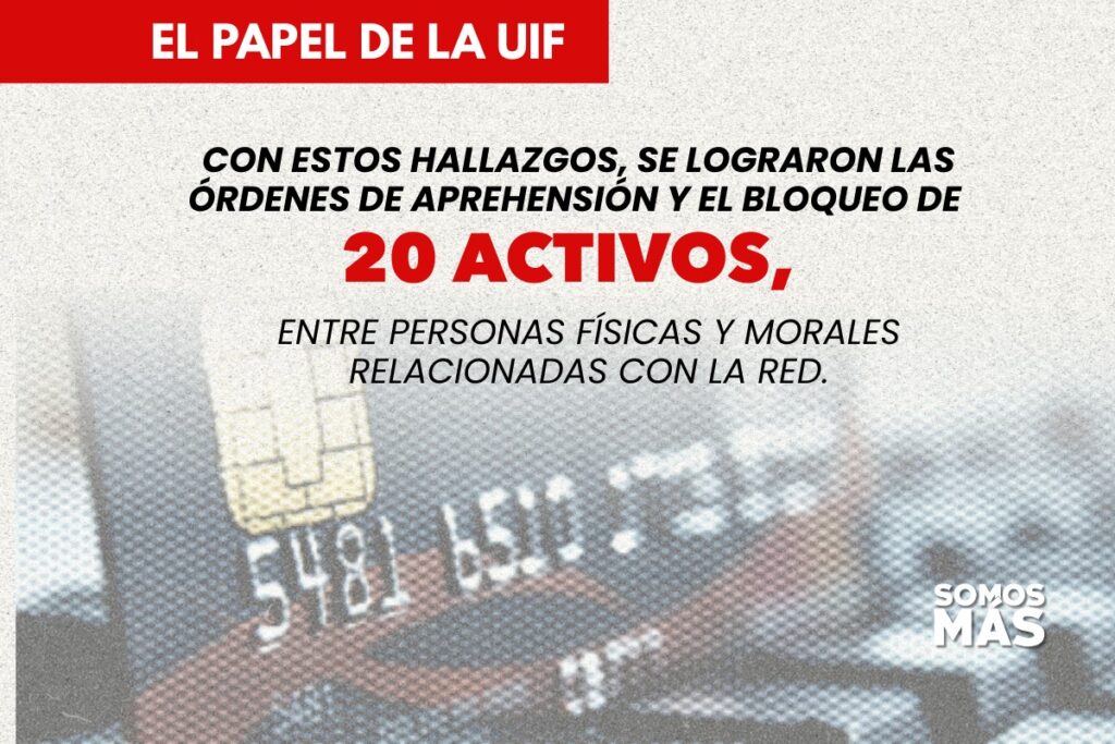 Con estos hallazgos, se lograron las órdenes de aprehensión y el bloqueo de 20 activos, entre personas físicas y morales relacionadas con la red.