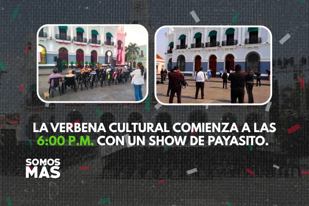 La verbena cultural comienza a las 6:00 p.m. con un show de payasito. Si quieres un buen lugar para ver a los tamborileros, los mariachis y el ballet folklórico, es mejor que llegues con tiempo. La plaza se llena rápido y tener una buena vista hace toda la diferencia para disfrutar el ambiente.