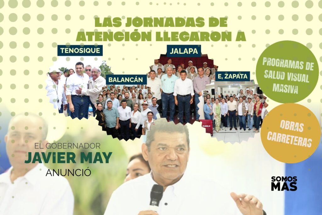 El Gobierno en cada rincón Esta semana, las Jornadas de Atención al Pueblo en Territorio llegaron a los municipios de Tenosique, Balancán y Jalapa, llevando soluciones y anuncios de inversión que transformarán la vida de las comunidades. El gobernador Javier May Rodríguez reafirmó que la austeridad y la honestidad permiten hacer más con menos, cumpliendo el compromiso de ser un gobierno cercano y eficiente. Aquí te contamos lo más destacado de cada visita.