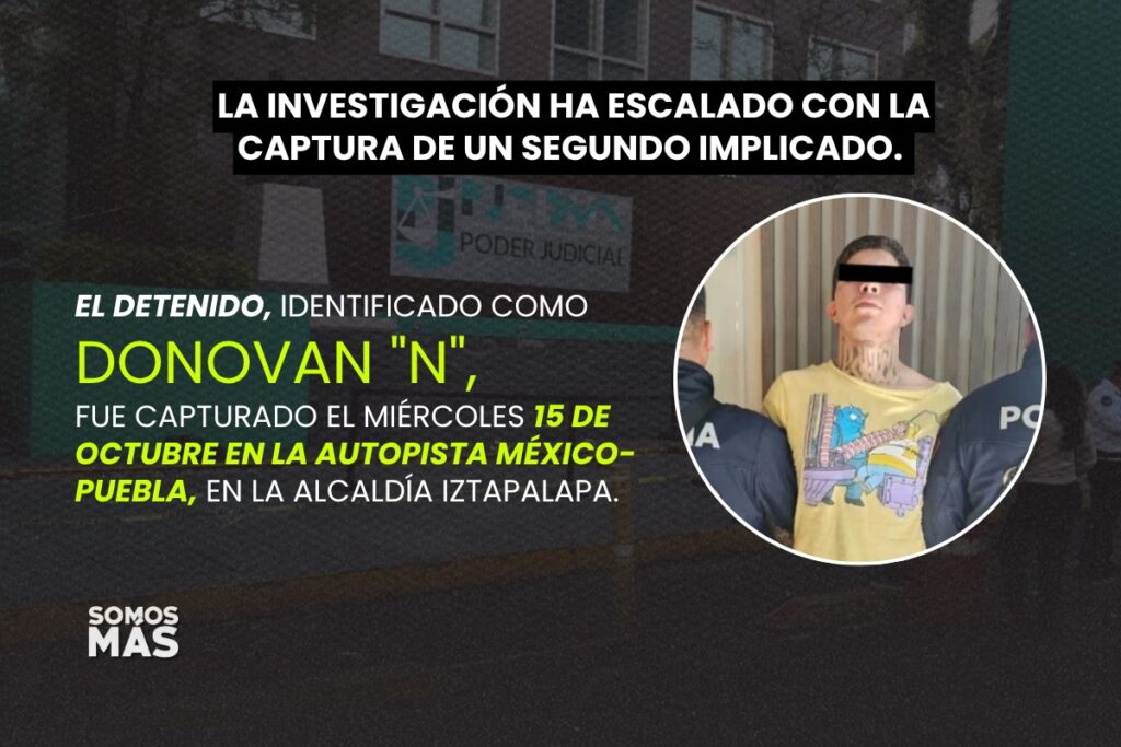 La investigación ha escalado con la captura de un segundo implicado. El detenido, identificado como Donovan “N”, fue capturado el miércoles 15 de octubre en la autopista México-Puebla, en la alcaldía Iztapalapa. La detención se logró gracias a trabajos de inteligencia y seguimiento, y al momento de la captura, a Donovan “N” se le hallaron drogas, un arma de fuego y cartuchos. Los dos atacantes, que viajaban en motocicleta, quedaron a disposición de las autoridades capitalinas.