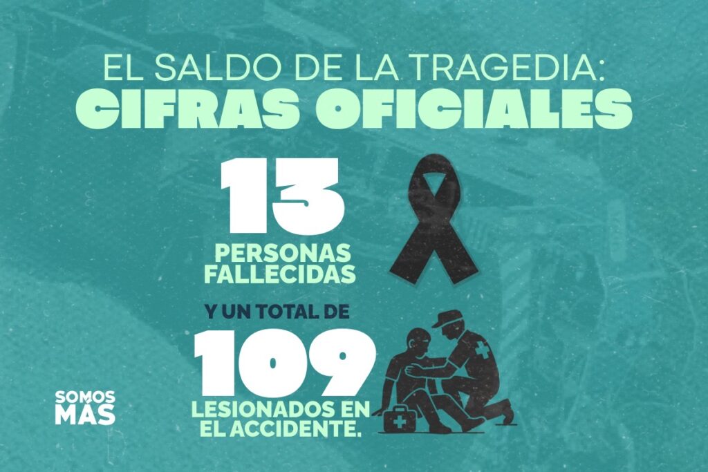 * Fallecidos: 13 personas (12 cuerpos recuperados y 1 en labores de rescate).