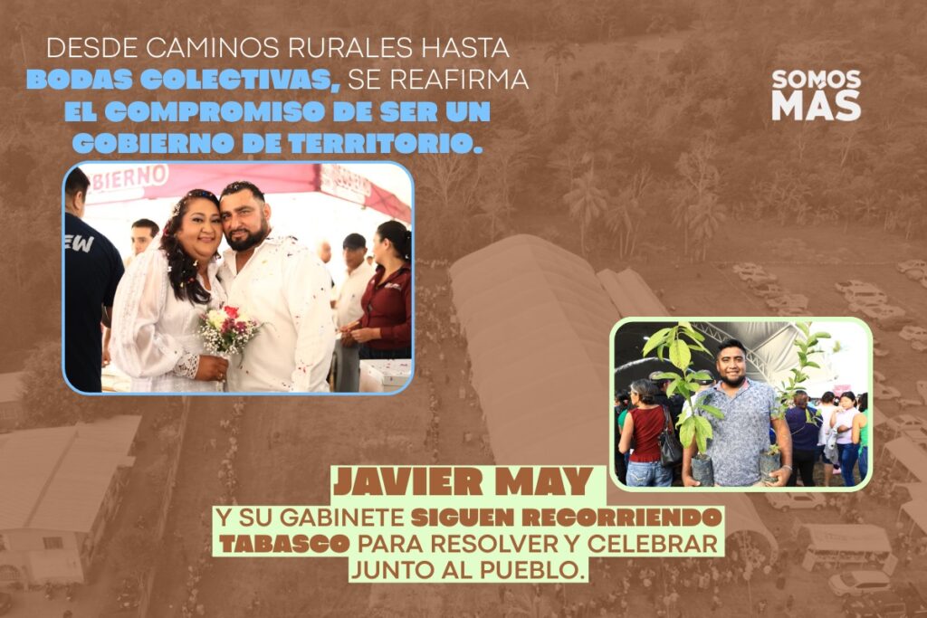 Desde caminos rurales hasta bodas colectivas, la gira reafirma el compromiso de ser un gobierno de territorio y no de escritorio. Javier May y su gabinete siguen recorriendo Tabasco para escuchar, resolver y celebrar junto al pueblo.