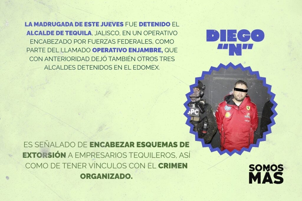 La madrugada de este jueves fue detenido el alcalde de Tequila, Jalisco, en un operativo encabezado por fuerzas federales, como parte del llamado Operativo Enjambre, que con anterioridad dejó también otros tres alcaldes detenidos en el Edomex.