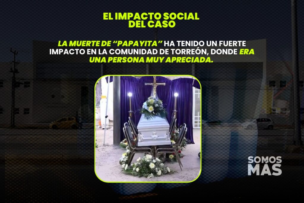 La muerte de “Papayita” ha tenido un fuerte impacto en la comunidad de Torreón, donde era una persona muy apreciada. En su funeral, su familia pidió justicia y que el caso no quede en la impunidad. “Era muy querido, todos lo conocían como ‘Papayita’ y nadie merece morir de esa manera”, expresó su hermana.