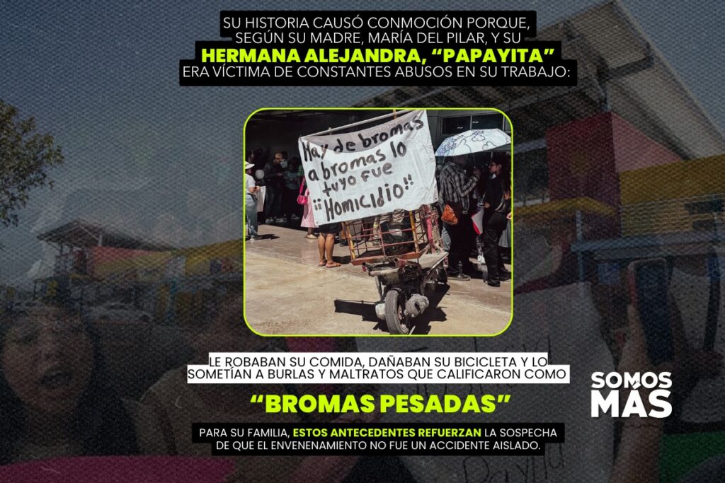 Su historia causó conmoción porque, según su madre, María del Pilar, y su hermana Alejandra, “Papayita” era víctima de constantes abusos en su trabajo: le robaban su comida, dañaban su bicicleta y lo sometían a burlas y maltratos que calificaron como “bromas pesadas”. Para su familia, estos antecedentes refuerzan la sospecha de que el envenenamiento no fue un accidente aislado.