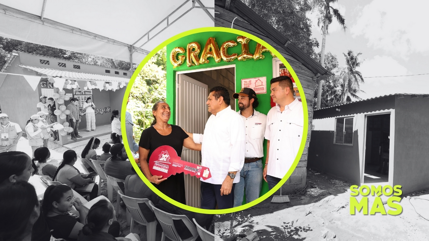 En Comalcalco, 62 familias recibieron viviendas nuevas como parte del programa Viviendas del Bienestar “Construyendo Esperanza”. Cada casa cuenta con dos cuartos, baño, sala-comedor y cocina, construida con materiales resistentes que sustituyen antiguas viviendas de madera y lámina. La entrega se realizó en la ranchería Tránsito Tular, donde las beneficiarias recibieron las llaves de sus hogares. Con esta acción, se busca reducir la desigualdad y mejorar la calidad de vida de cientos de personas que ahora cuentan con un espacio seguro y digno para vivir.