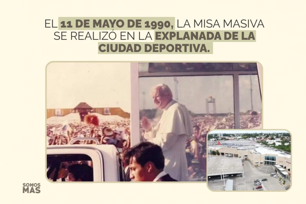 El 11 de mayo de 1990, Villahermosa se paralizó ante la llegada de Juan Pablo II. Debido a la multitud inmensa que se congregó para verlo, la misa principal no se realizó en una iglesia, sino en la entonces Explanada de la Ciudad Deportiva. Un dato que pocos recuerdan es que el altar mayor estaba ubicado exactamente en los terrenos donde hoy se levanta Plaza Crystal; es decir, miles de tabasqueños comulgaron en el mismo sitio donde hoy se realizan las compras de fin de semana.